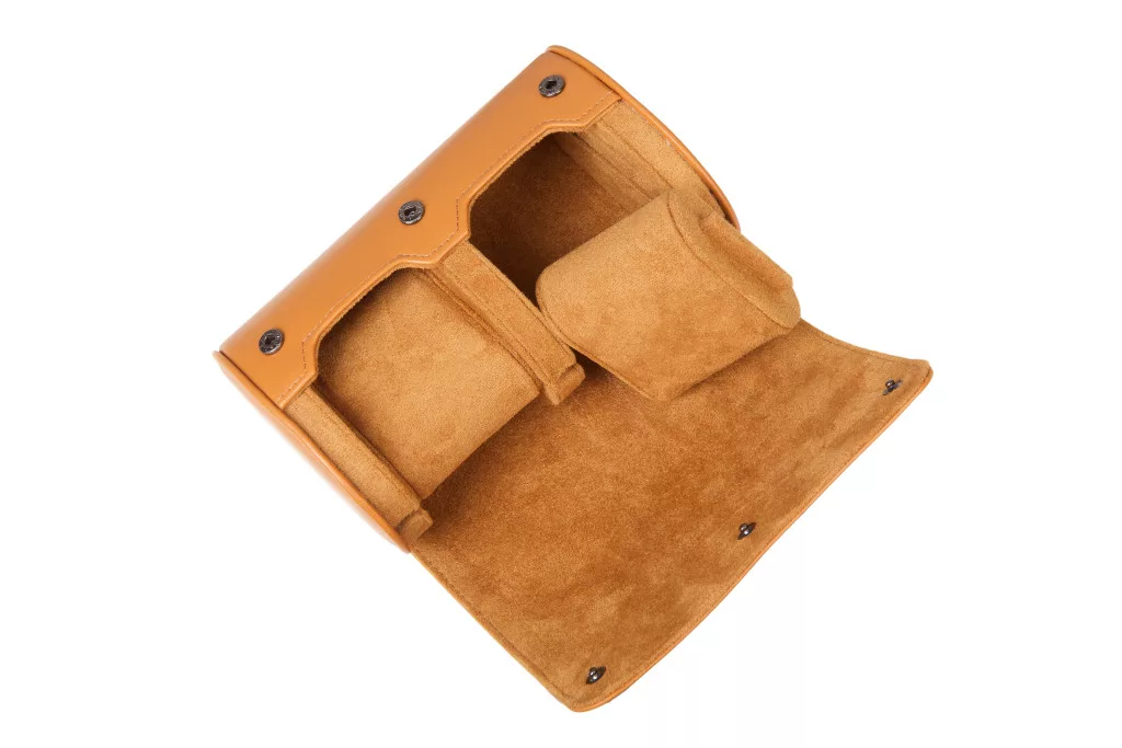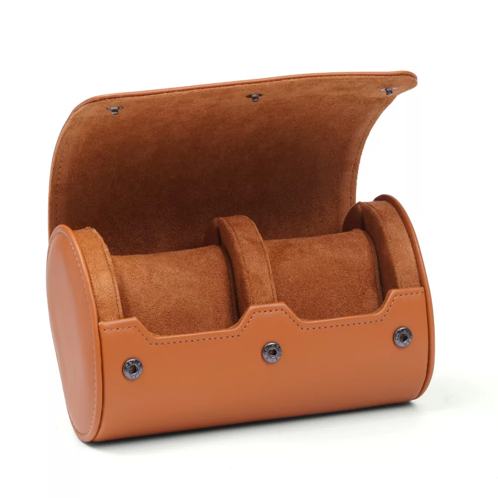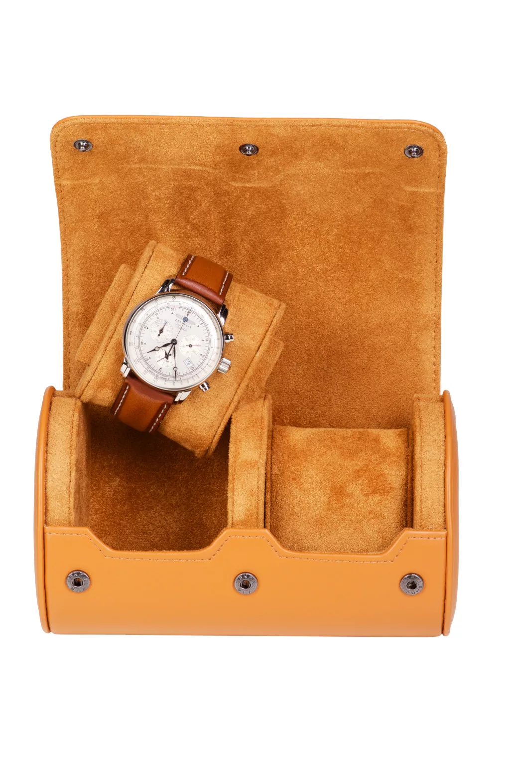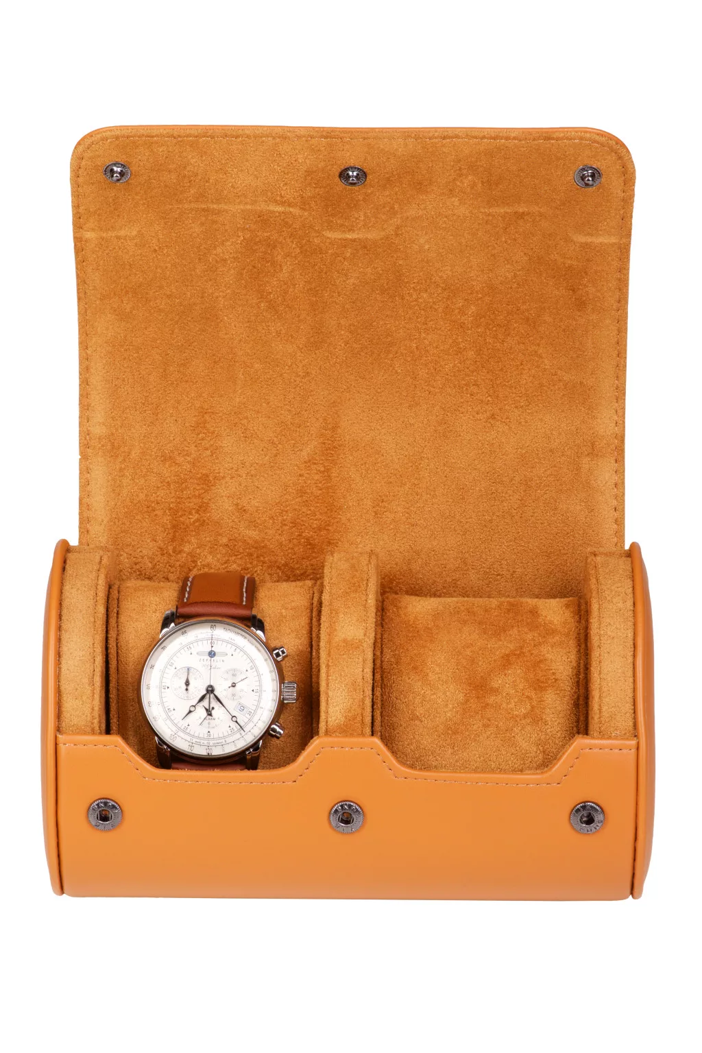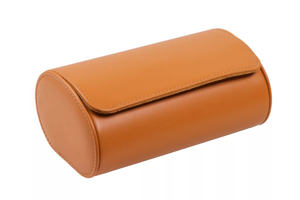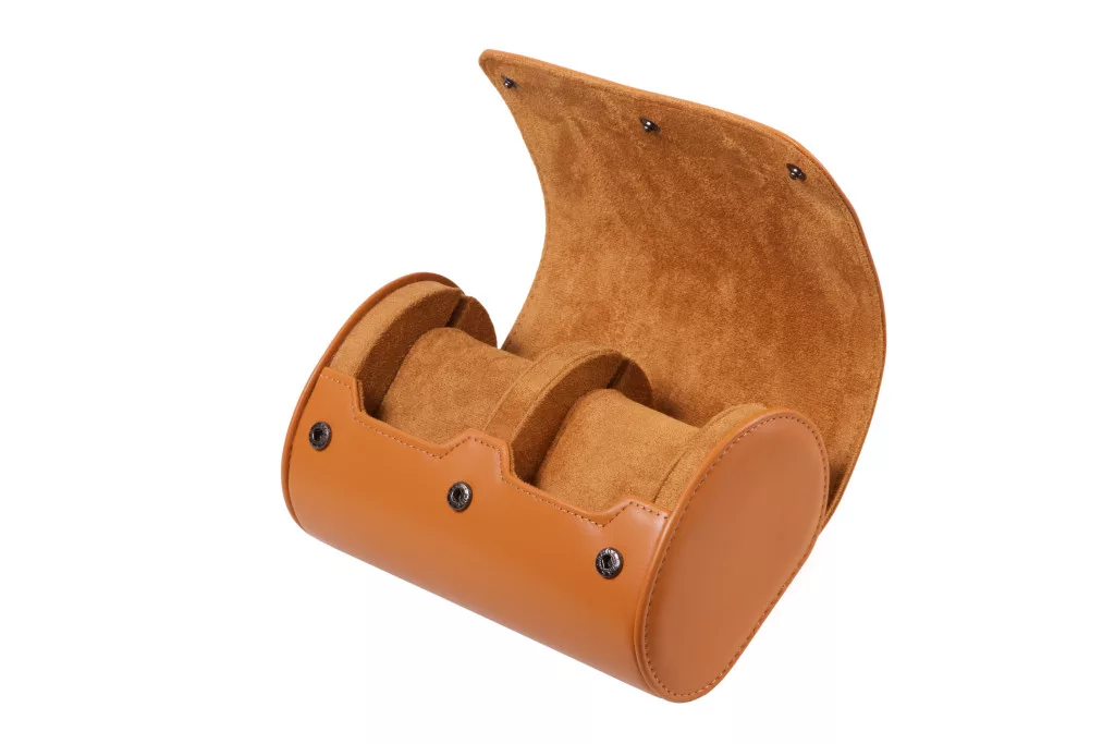 Hengeres óratartó doboz, utazó óratartó 2 órának, barna színben.