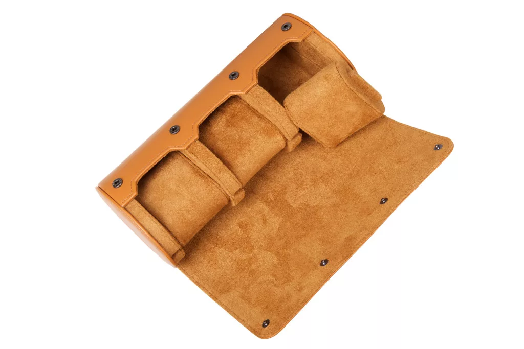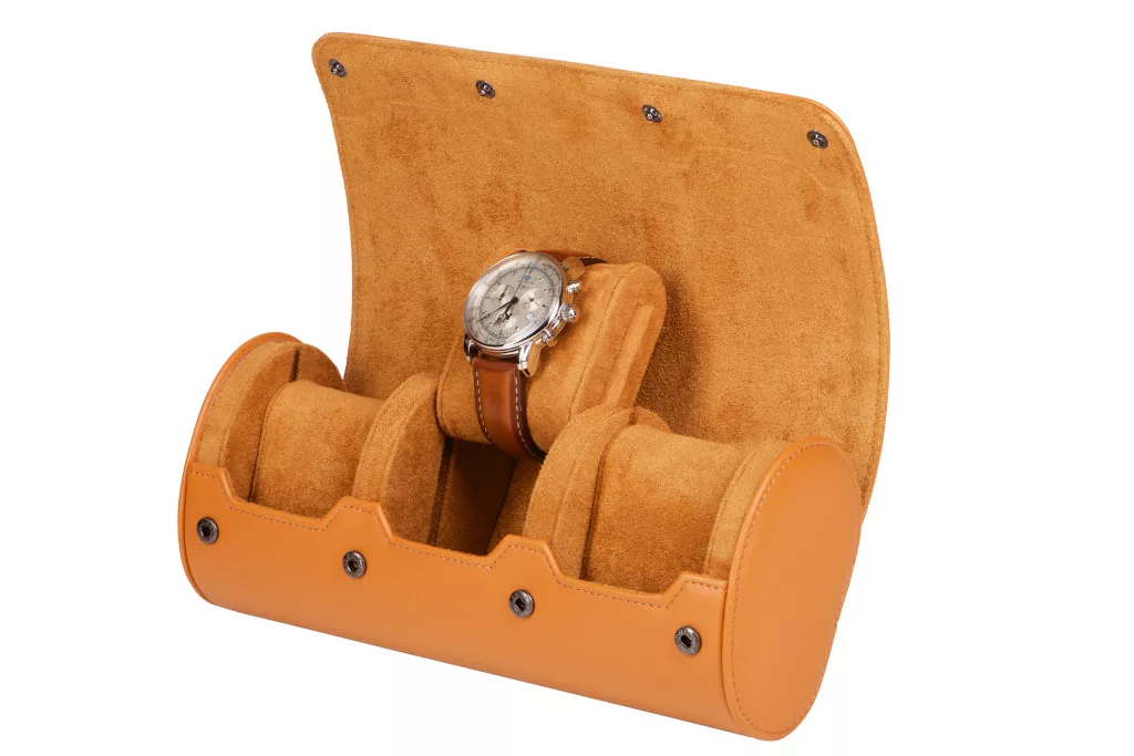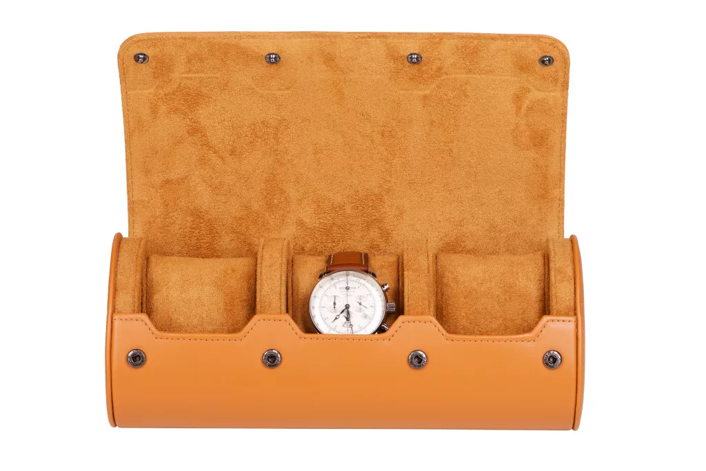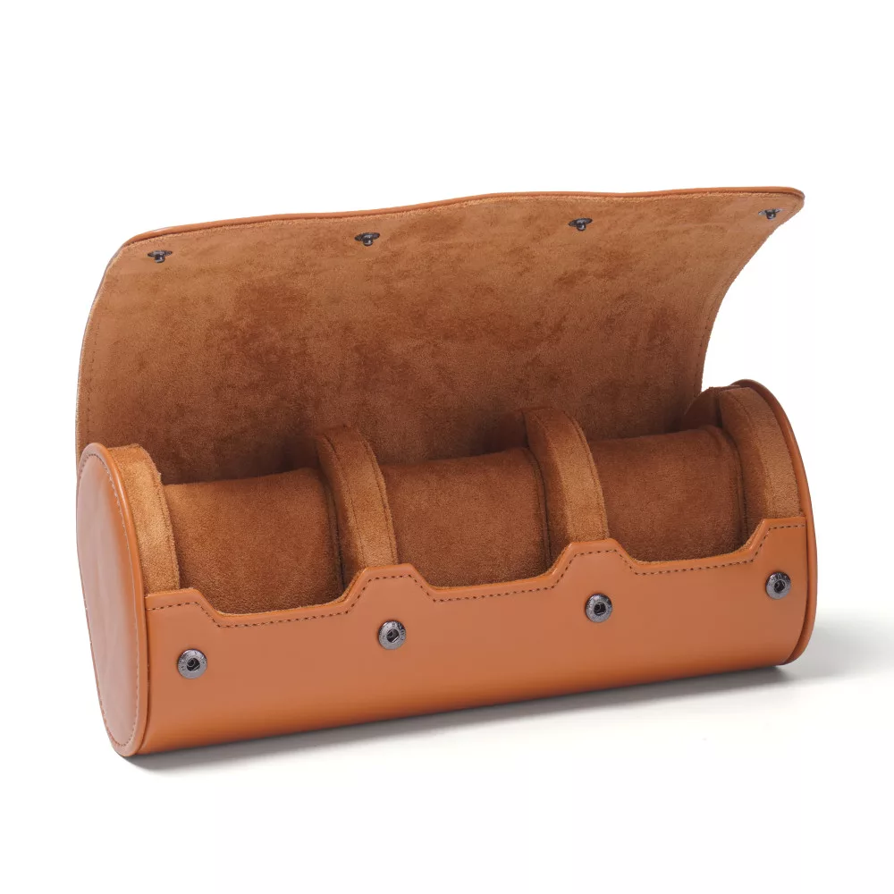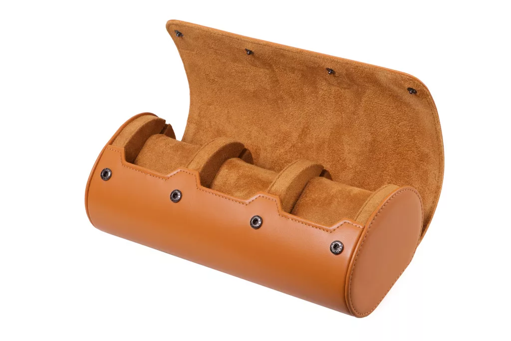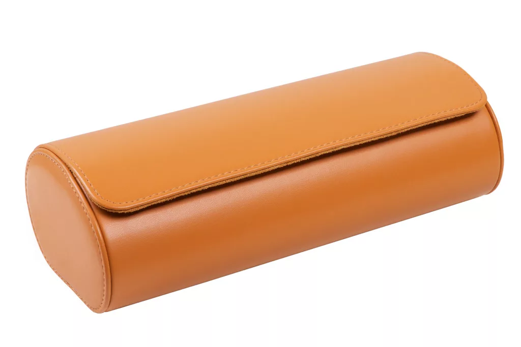 Hengeres óratartó doboz, utazó óratartó 3 órának, barna színben.