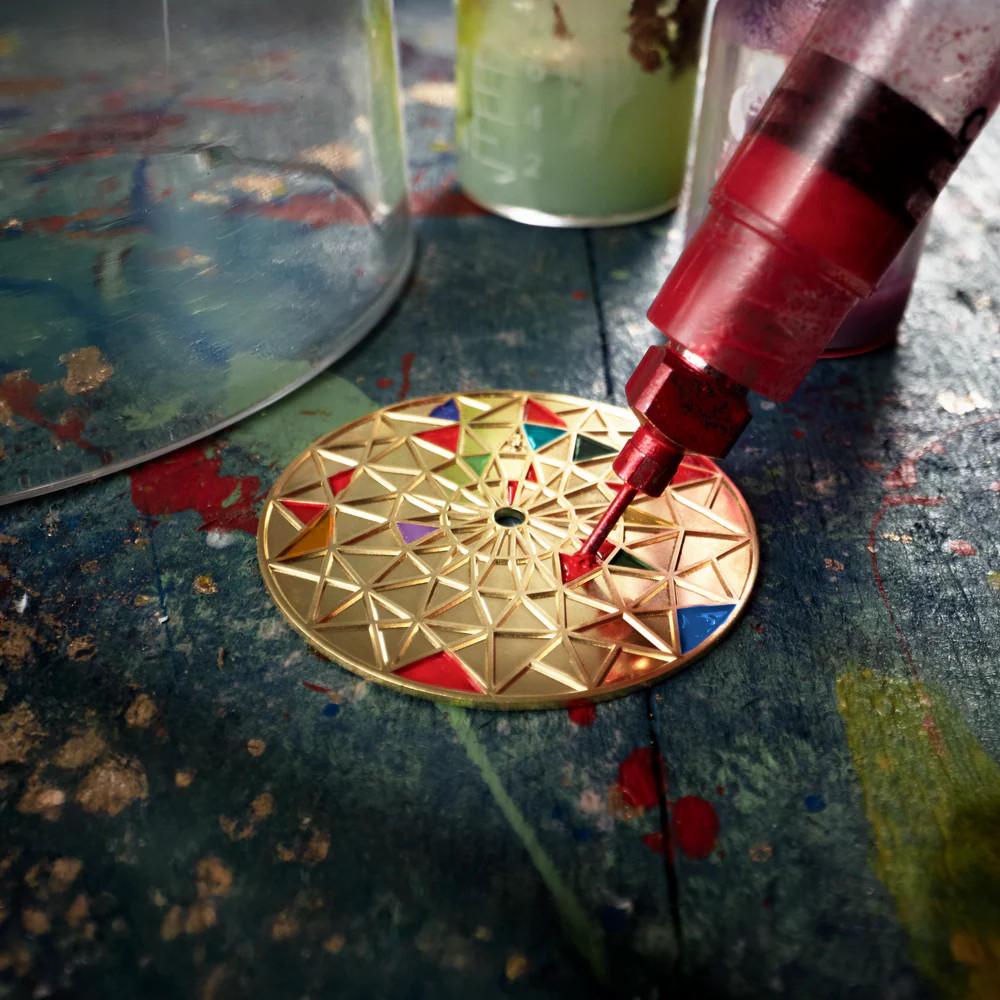 A számlap felépítése egy precíz, háromdimenziós geometriával gravírozott alappal kezdődik, amelyet úgy terveztek, hogy a színeket igazi műalkotásként befogadja. Ezután minden egyes cellát manuálisan töltenek ki hideg zománccal, precíziós eszközök segítségével, és aprólékosan keverik a színeket, gondosan tanulmányozva az árnyalatok kombinációját az ideális egyensúly elérése érdekében.